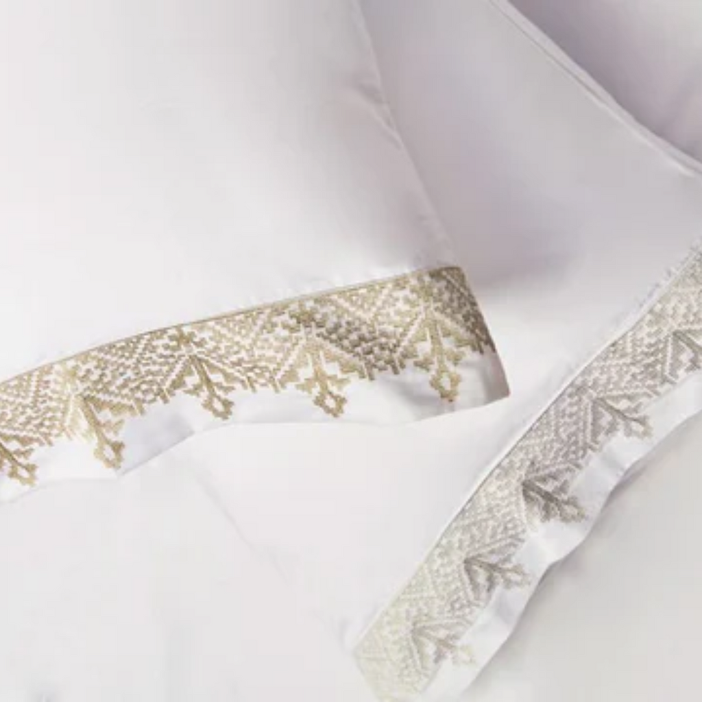 A rich Moroccan-inspired embroidery design that can add a touch of finesse to any room. The set uses 80x80 Yarn Count Cotton Sateen sheets made using long staple cotton yarn that gives the fabric a soft and luxurious feel and makes it very breathable.