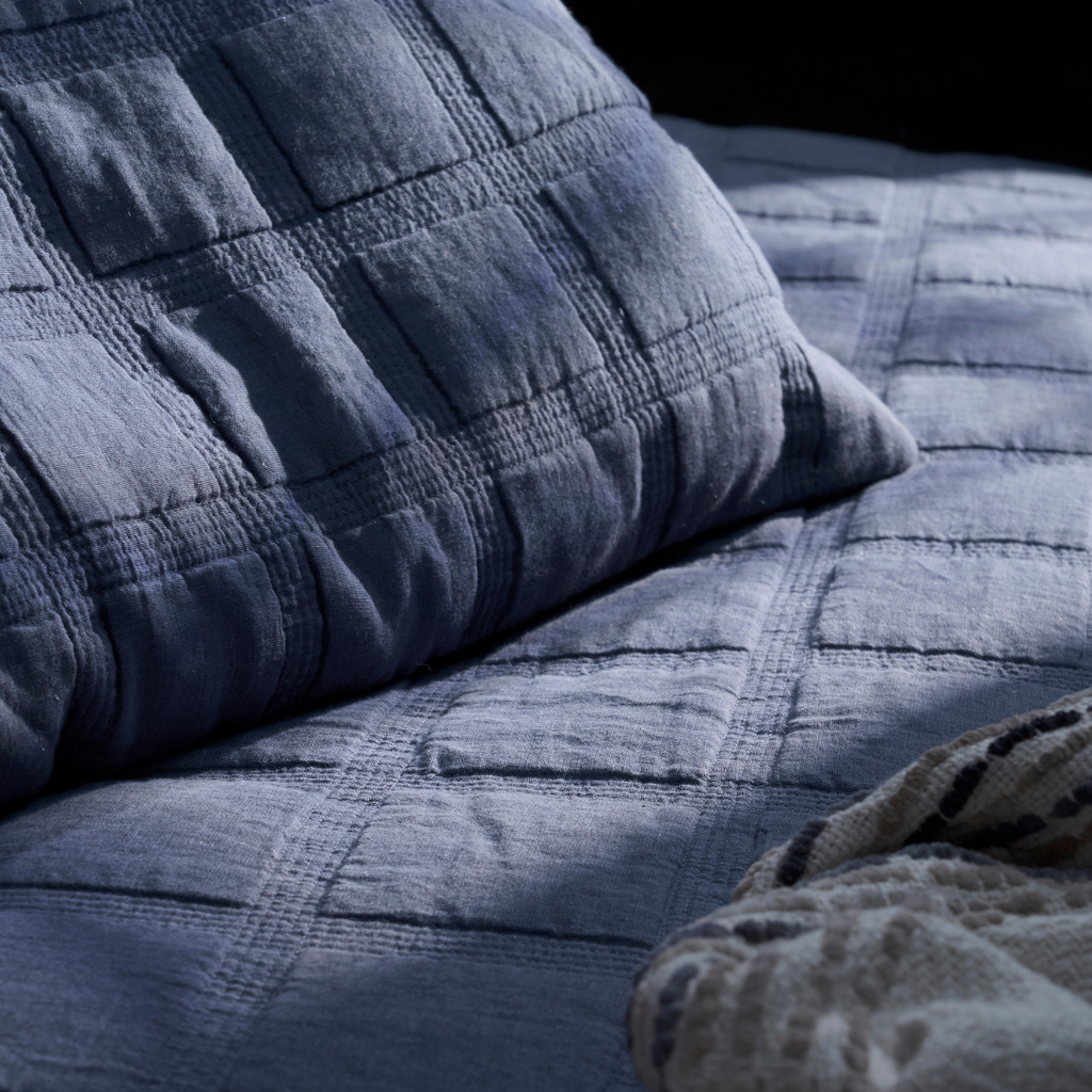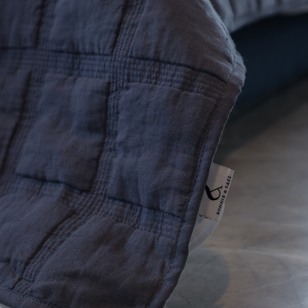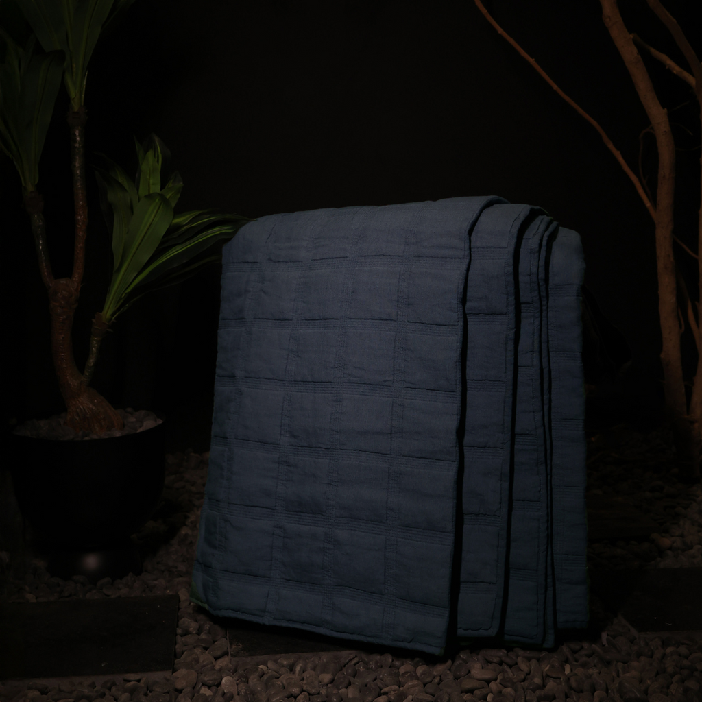 A machine quilted bedcover with Checkered Pattern. 100% Linen on the front and 100% Cotton on the back gives this bedcover an uber luxurious feel.