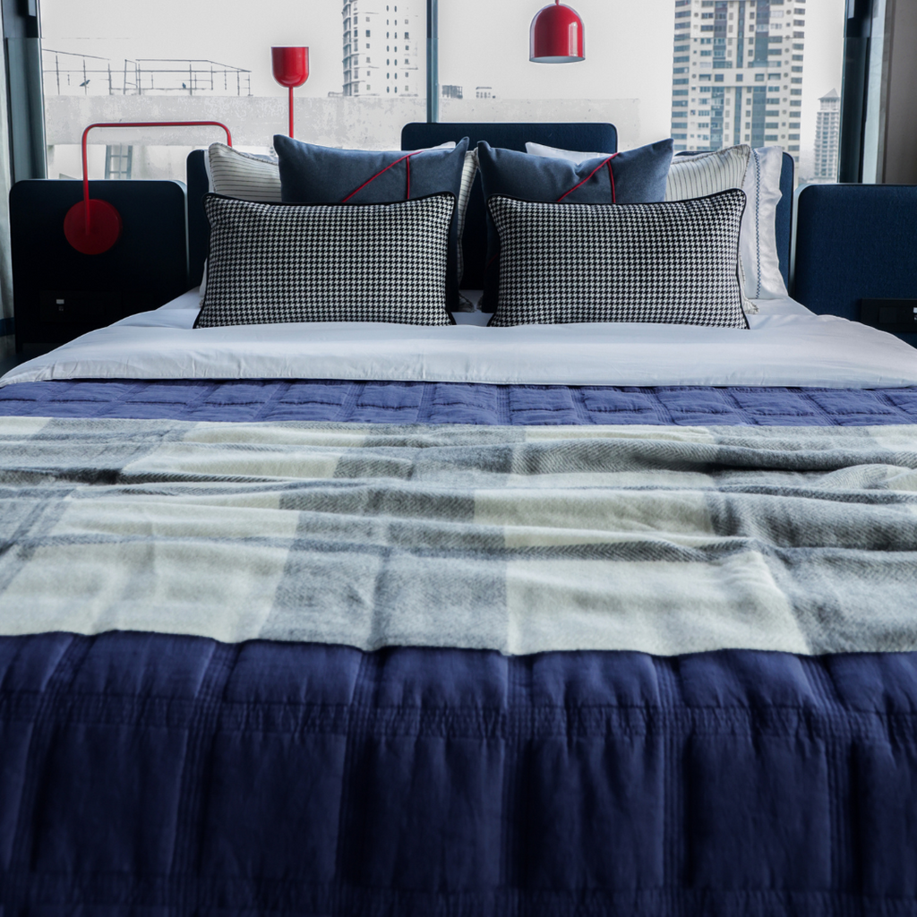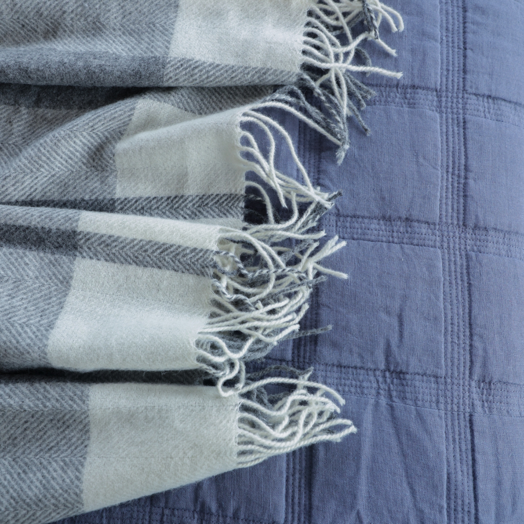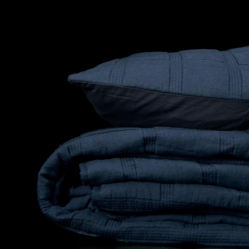 A machine quilted bedcover with Checkered Pattern. 100% Linen on the front and 100% Cotton on the back gives this bedcover an uber luxurious feel.
